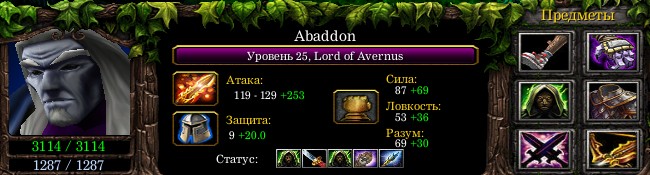 Он повышает свою стойкость с помощьющита тёмной силы, или же, используя своё здоровье, помогает союзникам в битве. Abaddon командует армией нежити,