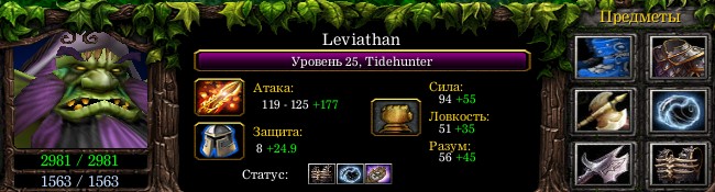 Понижает входящий физический урон. Не понижает урон от магии. Если Leviathan получит 600 урона от юнита, принадлежащего вражескому герою за 6 сек., снимает все дебаффы(через